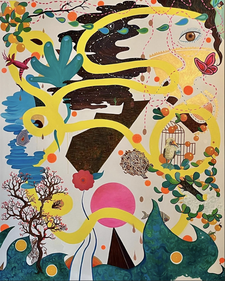 Enchanted Isle 2018 oil, ink, acrylic and oil pastel on canvas 70 x 70"